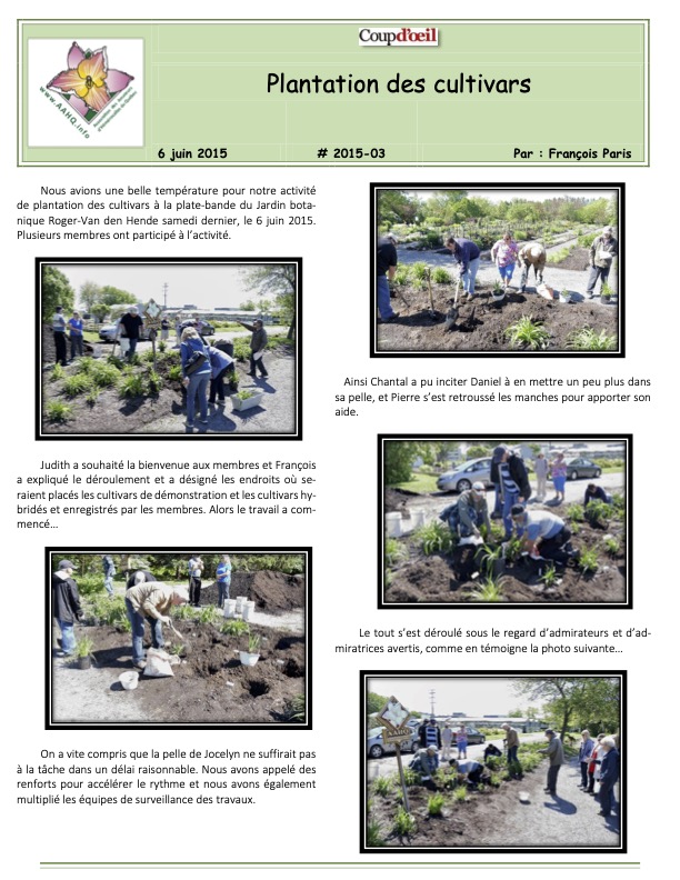 Plantation des cultivars 6 juin 2015