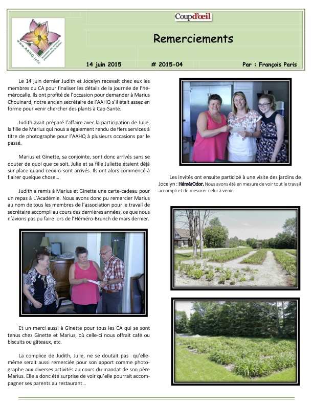 Remerciements 14 juin 2015